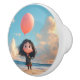 Girl with a Red Balloon at Sunset Beach Ceramic Knob