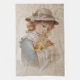 Adorable vintage illustration on gifts and apparel featuring a young girl wearing a hat with daisy flowers and cradling an armful of baby ducklings with her apron.