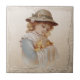 Adorable vintage illustration on gifts and apparel featuring a young girl wearing a hat with daisy flowers and cradling an armful of baby ducklings with her apron.