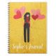 Cute graphic of a girl holding a bunch of heart shaped balloons. Cute and whimsical and girly against a stylish textured golden backgound.