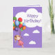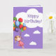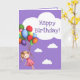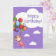 Girl with Balloons Purple Happy Birthday Card