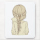 Girl with Braid and Cat Illustration – Soft Pastel Mouse Pad