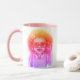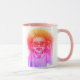 Girl with glasses - Start your day with a splash of colour and confidence! This two-toned mug features a sweet and stylish illustration of a young girl with glasses and big curly hair, all in vibrant pink, orange, and purple hues. A fun and empowering sip every time! 💕☕✨