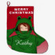 Cute Girl with Green Frog Hoody Drawing Christmas Stocking. A cute drawing of a girl wearing a green frog hoody. Fun design for a girl for Christmas. Add your name and text.