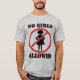 No Girls Allowed Gifts. T-shirt for Deer Camp! Or Man Cave! t-shirt for Bachelor Party! A Red Prohibition Sign with a Woman Inside. The no symbol (also known as a prohibition sign, no sign, circle symbol, or universal no) is a circle with a diagonal line through it (running from top left to bottom right), surrounding a iconic pictogram used to show something is not permitted. The no symbol is generally coloured red as it is here. no girls allowed, bachelor party, deer camp, boys night out, father son night out, dad and sons night out, funny mens, man cave, all boys slumber parties, all boys summer camp, all boys hunting camp, bear camp, metro man, bachelor parties,