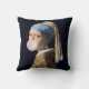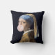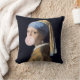 Girl with Pearl Earring blowing pink bubble gum Cushion