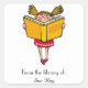Girl With Pigtails and Red Dress Reading Bookplate Square Sticker