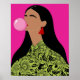 Girl with Pink Bubblegum Illustration Funky Art Poster