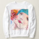 Girl with Red Rose Beret Watercolor Girls Pink Sweatshirt