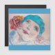 Girl with Red Rose Beret Watercolor Magnetic Card