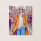 The image would depict the girl's trendy outfit, capturing the latest fashion trends and reflecting her unique personal style. The vibrant colours and detailed elements of the puzzle would bring the urban setting to life, with graffiti-covered walls, bustling streets, and a sense of energy and excitement.