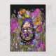 Girl with violet hair in the garden pool black postcard