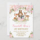 Girl Woodland 1st Birthday Pink Gold Floral Party Invitation