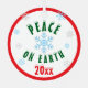 Girl 12th Christmas or any age year written in green. My Christmas in fun snowcapped red typography. Child's Name in pink. Insert YEAR, or backspace text to leave area blank. Whimsical pink car, and snowflakes, trees, green ornament, blue gift box. Peace on Earth written on backside of two-sided item. Designs by TamiraZDesigns.