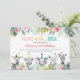 This cute birthday invitation features watercolor safari animals with faux gold foil laves and confetti.