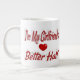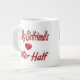 Mug with I'm my girlfriend's better half in 3D red text. Available in several sizes and styles.