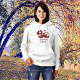 For her, a warm and cosy pullover hoodie made from cotton-poly blend with a 100% cotton face. Perfect for Valentine or casual wear. What's more, you can create the most unique customised pullover hoodie with a personalised quote/name/message. This design features 2 love birds, hearts and floral illustrations in red. A customised quote with BAE 'Before Anyone Else' which can be changed or left as it is.