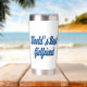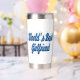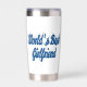 Tumbler with World's best girlfriend in 3D sea blue text.