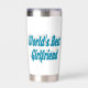 Tumbler with World's best girlfriend in 3D sky blue text.