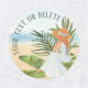 - 1 with watercolor seaside illustration with a yound lady, sitting in white long dress over green foliage