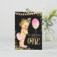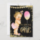 Girls 1st Birthday Gold Foil Glitter Invitation