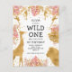 Girls 1st Birthday Party Pink Gold Safari Invitation Postcard