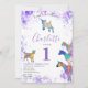 Girls 1st Birthday Party Watercolor Goats Purple Invitation