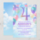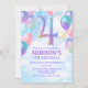 Girls 4th Birthday Rainbow Balloons Invitation