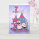 Girls 7th Birthday Pink n Purple Cartoon Monsters Card
