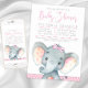Girls elephant baby shower invitations with adorable baby girl elephant with pretty pink bow on a sweet pink polka dot background. These sweet baby girl elephant baby shower invitations are easily customised for your event by simply adding your details.