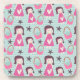 Girls and Handbags design stickers, ornaments, cards, pillows, wall clocks, bottle openers, cutting boards, notebooks, watches, wallets, dry erase boards, and lots of other items with a cute design featuring girls in pink heart dresses, pink and white polka dotted handbags, deep purple stars, and a blue chevron stripe background.
