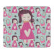 Girls and Handbags design stickers, ornaments, cards, pillows, wall clocks, bottle openers, cutting boards, notebooks, watches, wallets, dry erase boards, and lots of other items with a cute design featuring girls in pink heart dresses, pink and white polka dotted handbags, deep purple stars, and a blue chevron stripe background.