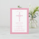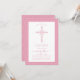 This stylish and modern petite (4.5" x 6.25") girl's Baptism or Christening invitation features an elegant pink cross with a coordinating pink border. The background colours on the front and back as well as the text can be customised for your special religious occasion.