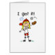 Stick figure girl baseball player in a red uniform and baseball cap catches the ball in her glove and text reads "I got it!". If you love baseball and stick figures you'll love this cute design!