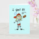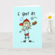 A blonde haired stick figure girl baseball player catches the ball in her baseball glove and text reads "I Got It!" on girls baseball design T-shirts, hoodies, mugs, cards, stickers, keychains, and other baseball player apparel and gift items.
