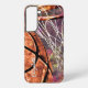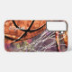 This girls' basketball Samsung case features girly basketball and hoop sports graphics composite blended with purple pink scribbly doodle texture background with customisable name by katz_d_zynes