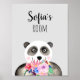 Girls Beautiful Flowers Watercolor Panda and Name Poster