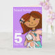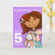 Girls belated 5th birthday girl dark hair purple card