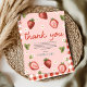 This cute and whimsical girls 1st birthday thank you design features adorable pink strawberry and flower illustrations, and can be personalised with your own thank you message. The “berry first” design also features a matching red gingham pattern on the back. The perfect berry farm design for your little one's birthday!