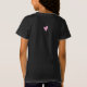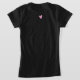 The design has a small pink heart on the front as well as the back of the t-shirt