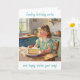 A birthday card for her with a sweet illustration of a piece of chocolate cake, pretty colorful flowers sitting on a rustic wood table in a cute cottage kitchen. This has a sweet sentimental message inside.