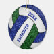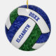 This girl's volleyball ornament features the realistic image of a stylised volleyball that has a floral kaleidoscopic pattern blended with its green and blue panels - her name and holiday year are customisable - by katz_d_zynes