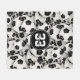 This sporty soccer themed fleece blanket for girls or boys features a randomly arranged pattern of black and white soccer balls in varying sizes turned every which way in what appears to be an endless pile of balls - player name in an "autograph" style font and large jersey number in a varsity-letter style font are customisable - by katz_d_zynes