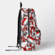 This cool volleyball backpack features a random pattern of varied size red, grey & white volleyballs turned every which way on a white background - customise with the athlete's name & jersey number - by katz_d_zynes