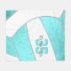 This cosy volleyball themed fleece blanket for her features the image of an abstractly oversized turquoise and white stylised volleyball that covers the entire blanket - personalise with the athlete's name and jersey number - by katz_d_zynes