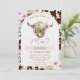 Girls Brown Highland Cow Cow Print Birthday Party Invitation