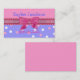 Pretty girl's calling card / enclosure card done in pink, periwinkle blue, and white, with polka dots and a pretty ribbon and bow.  Customise the text for your little girl.