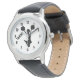 Stylish cheerleader's watch, with the black silhouette of a jumping cheerleader against a white background. Black numbers representing the hours and custom black text ready to personalise with your favourite cheerleader's name. Makes a great gift idea.
