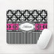 Girl's Chic Paris Damask Retro Pink and Black Mouse Pad