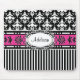 Add your own name to this fashionable mousepad in hot pink, black and white.